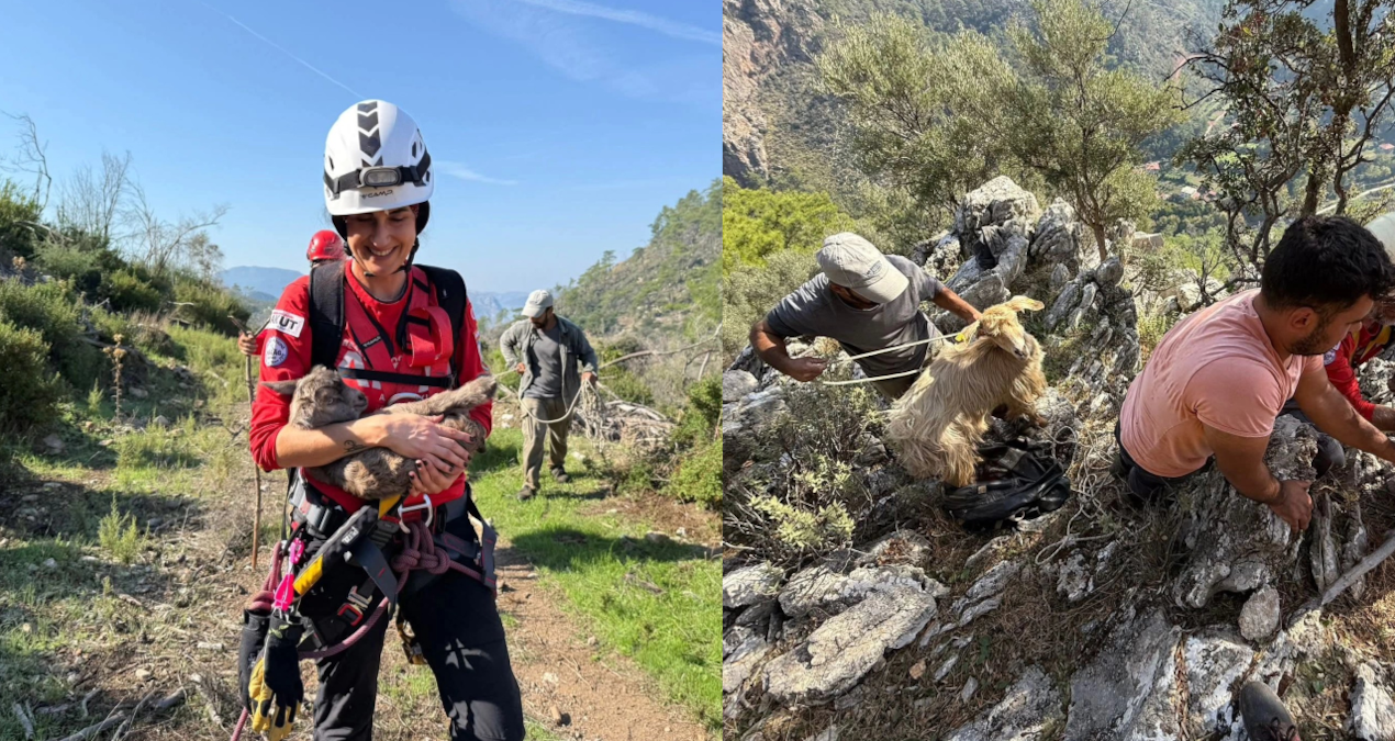 Bölgeye gelen Fethiye AKUT ekibinin 7 üyesi yaklaşık 4 saat süren operasyonda uçurumda mahsur kalan 4 keçiyi kurtararak sahibine teslim etti.